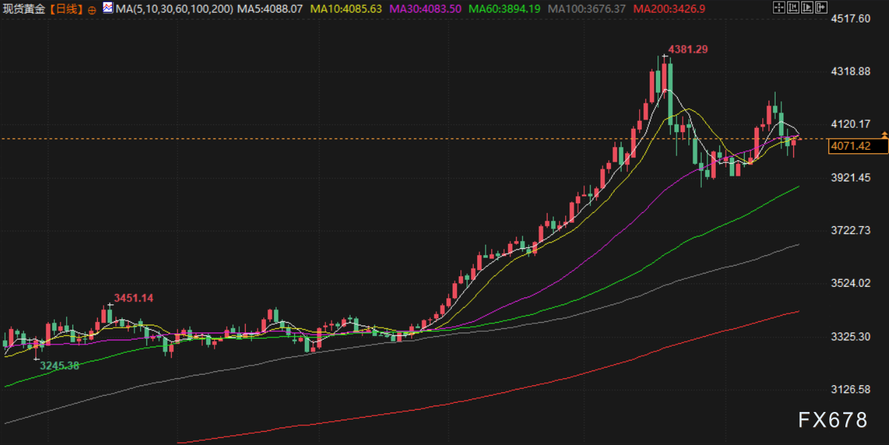 汇通财经APP讯——周三(北京时间11月19日)亚市早盘,现货黄金交投于4072美元/盎司附近,黄金周二触及一周低位后回升。主要受美国疲软的就业数据推动,该数据增强了市场对美联储可能在12月降息的预期;美原油交投于60.68美元/桶附近,周二油价在多重因素影响下震荡收高,美国总统特朗普宣布已启动下一任美联储主席的面试工作,提振了市场风险偏好。