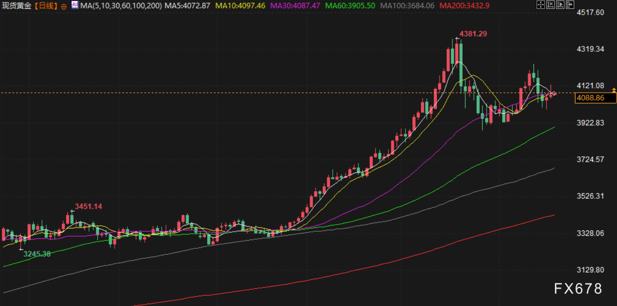 周三金价在美联储公布会议纪要后收窄涨幅,现货黄金最终上涨0.2%,报收每盎司4073.79美元,盘中曾攀升逾1%。市场正密切关注即将公布的经济数据,以寻找美联储未来利率走向的线索。