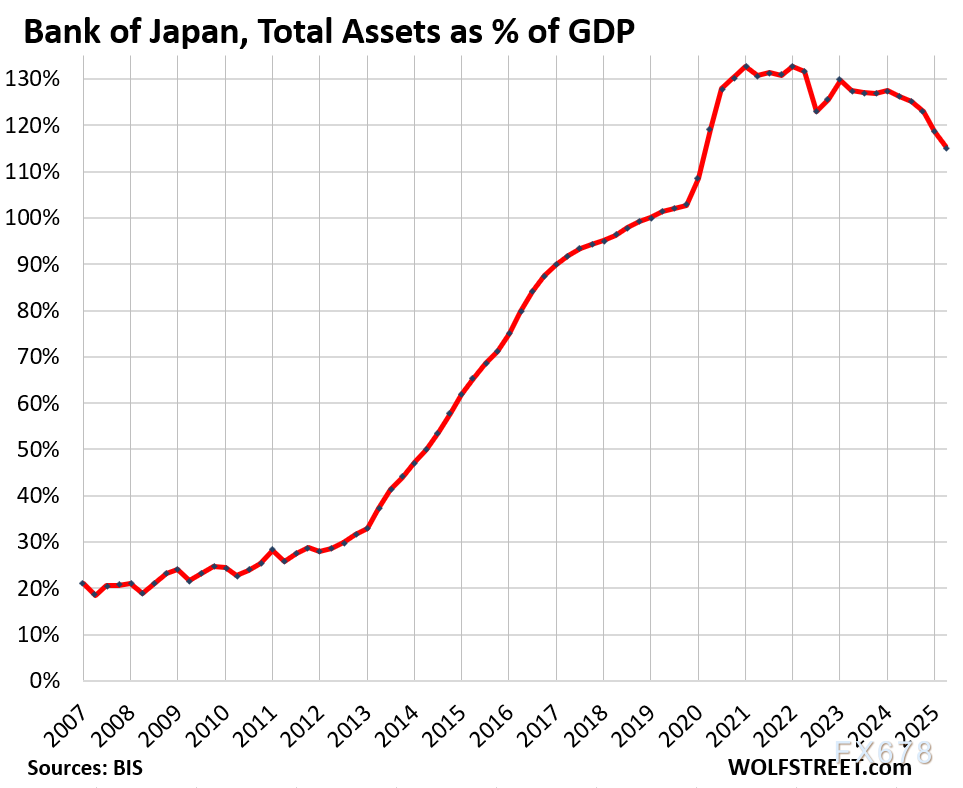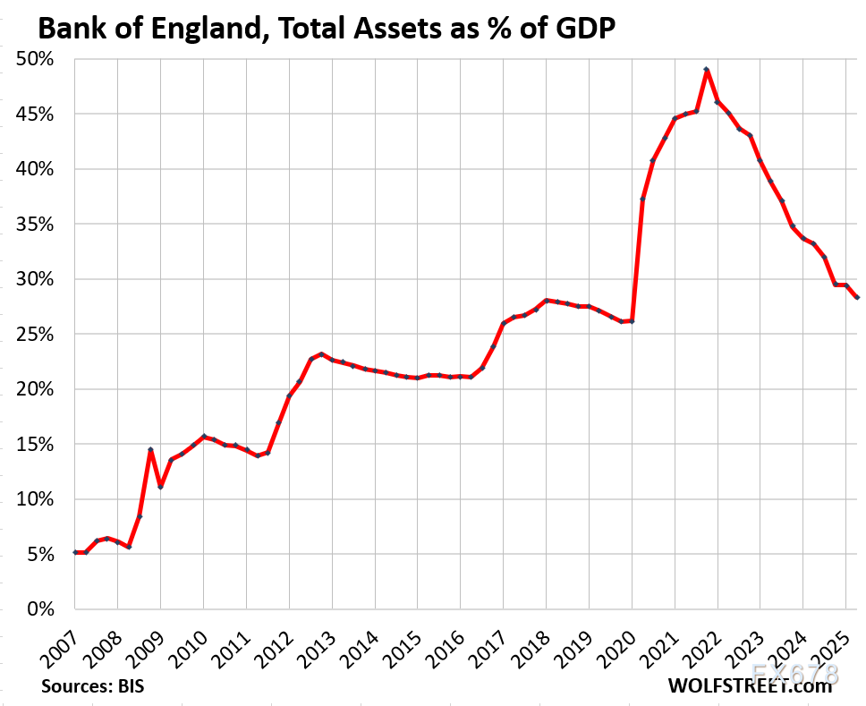 自2008年全球量化宽松(QE)狂潮席卷以来,叠加疫情期间及后续的大规模印钞操作,各国央行资产负债表已膨胀至畸形规模,而当前这一非理性扩张态势正持续修正。