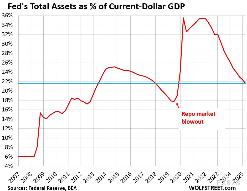 美联储主席鲍威尔在上次新闻发布会中特意援引这一比例,用以量化美联储逾三年缩表的实际成效。